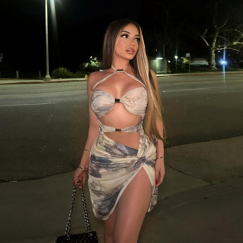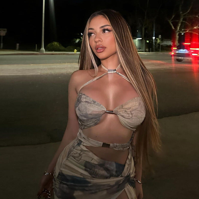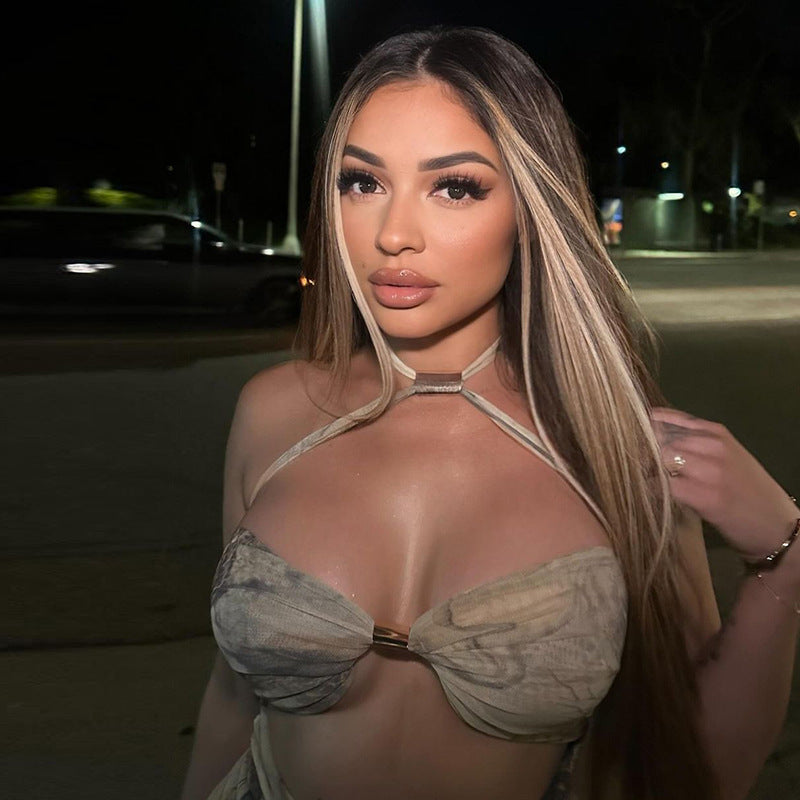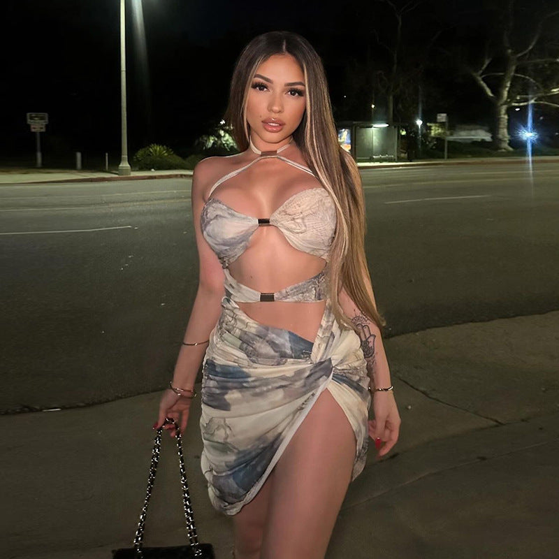European And American Hot Halter Low-cut Sexy Backless Dress