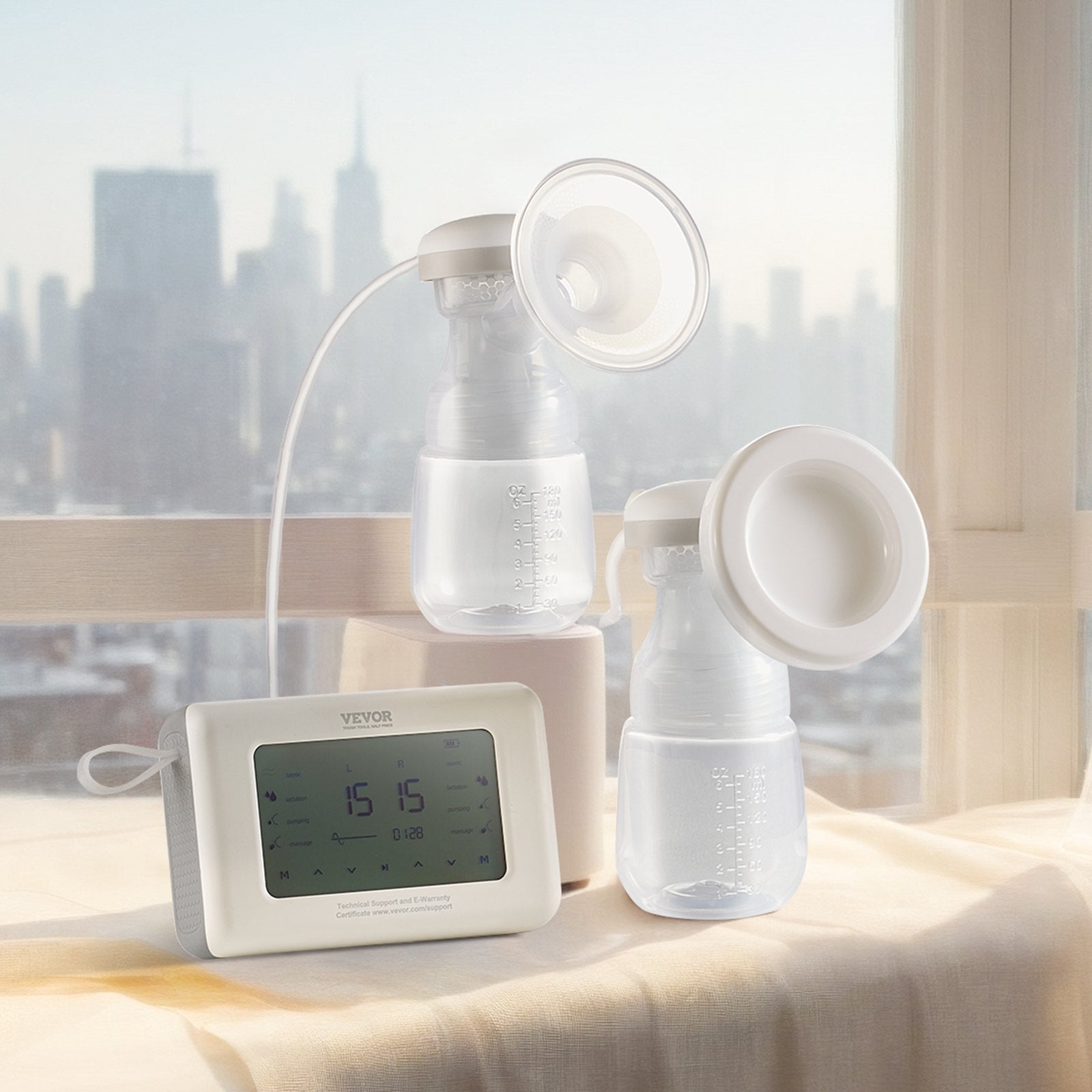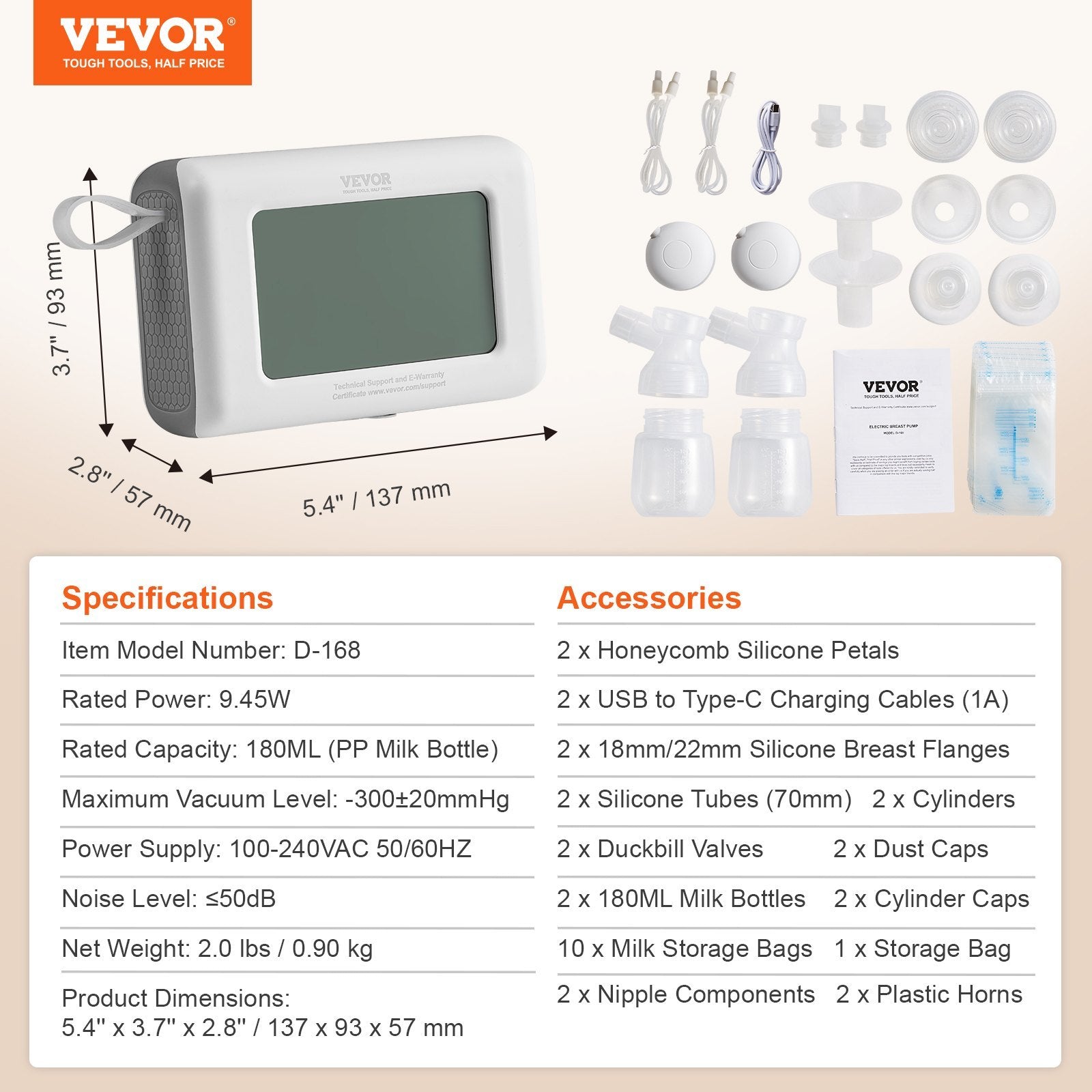 VEVOR Breast Pump, Single Double Adjustable Electric Breast Pumps, 4 Modes Reciprocating Piston Pumps, 4000mAH Anti-Backflow BreastfeedingPump With 300mmHg High Suction,